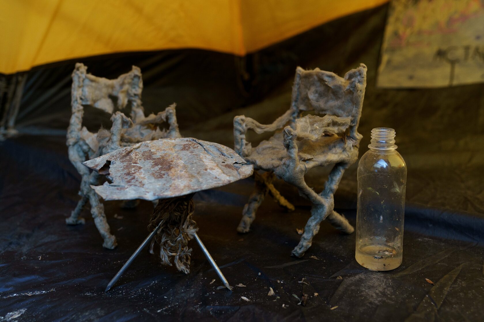Let's start with kindling. Everything that can quickly ignite, will be used: pine needles, tree bark.