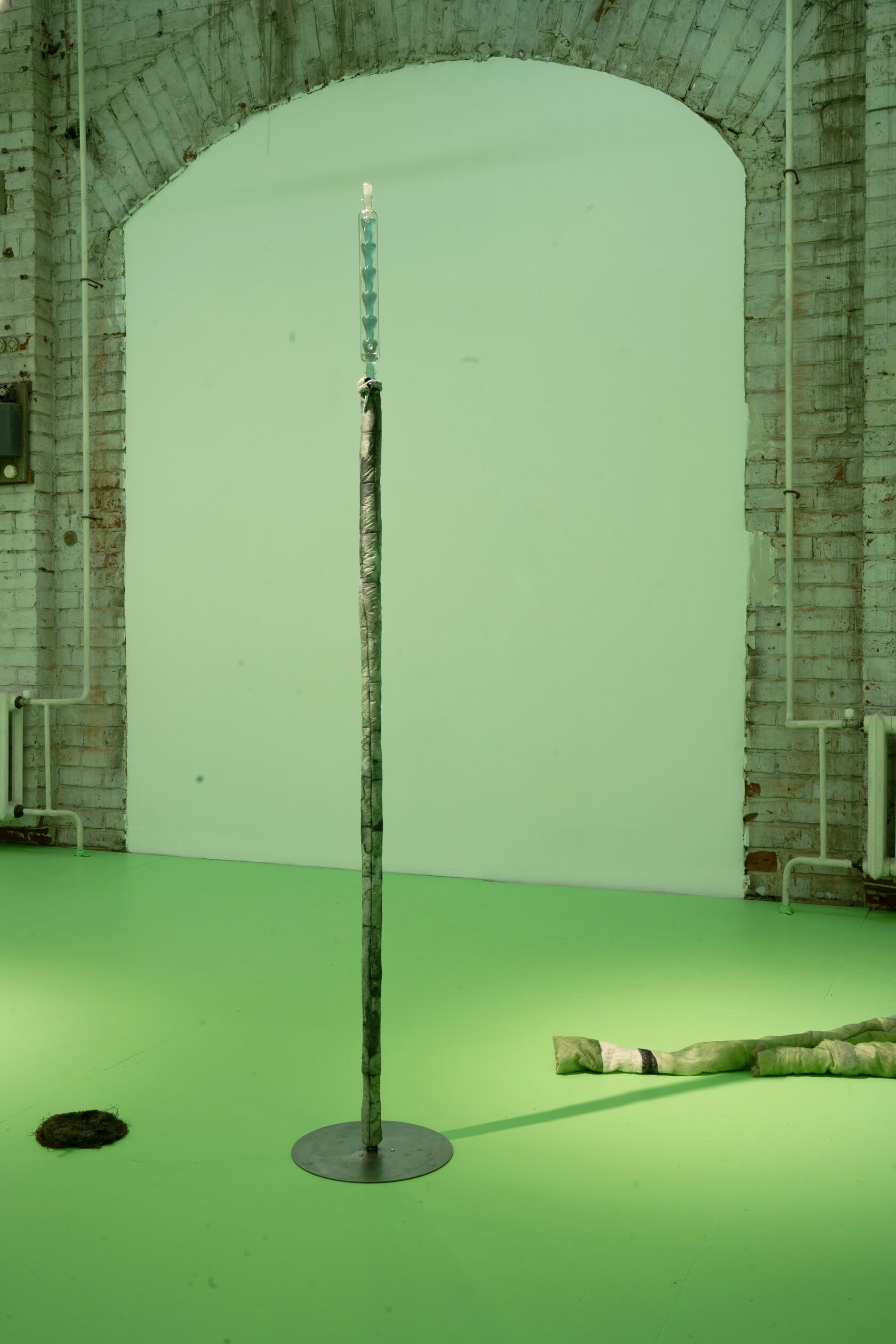 2023, water, metal, glass, fabric, muline, 173 x 33 x 33 cm