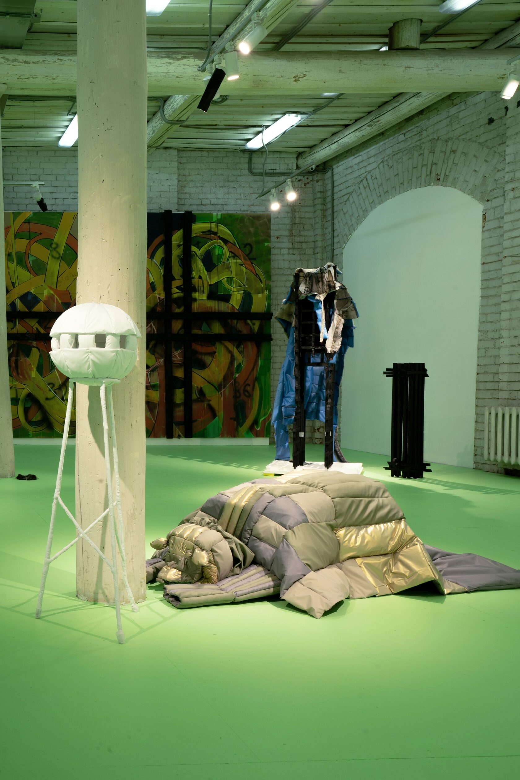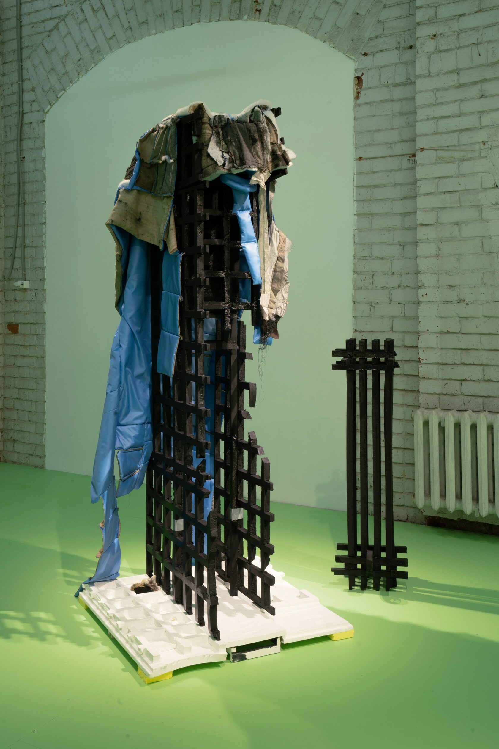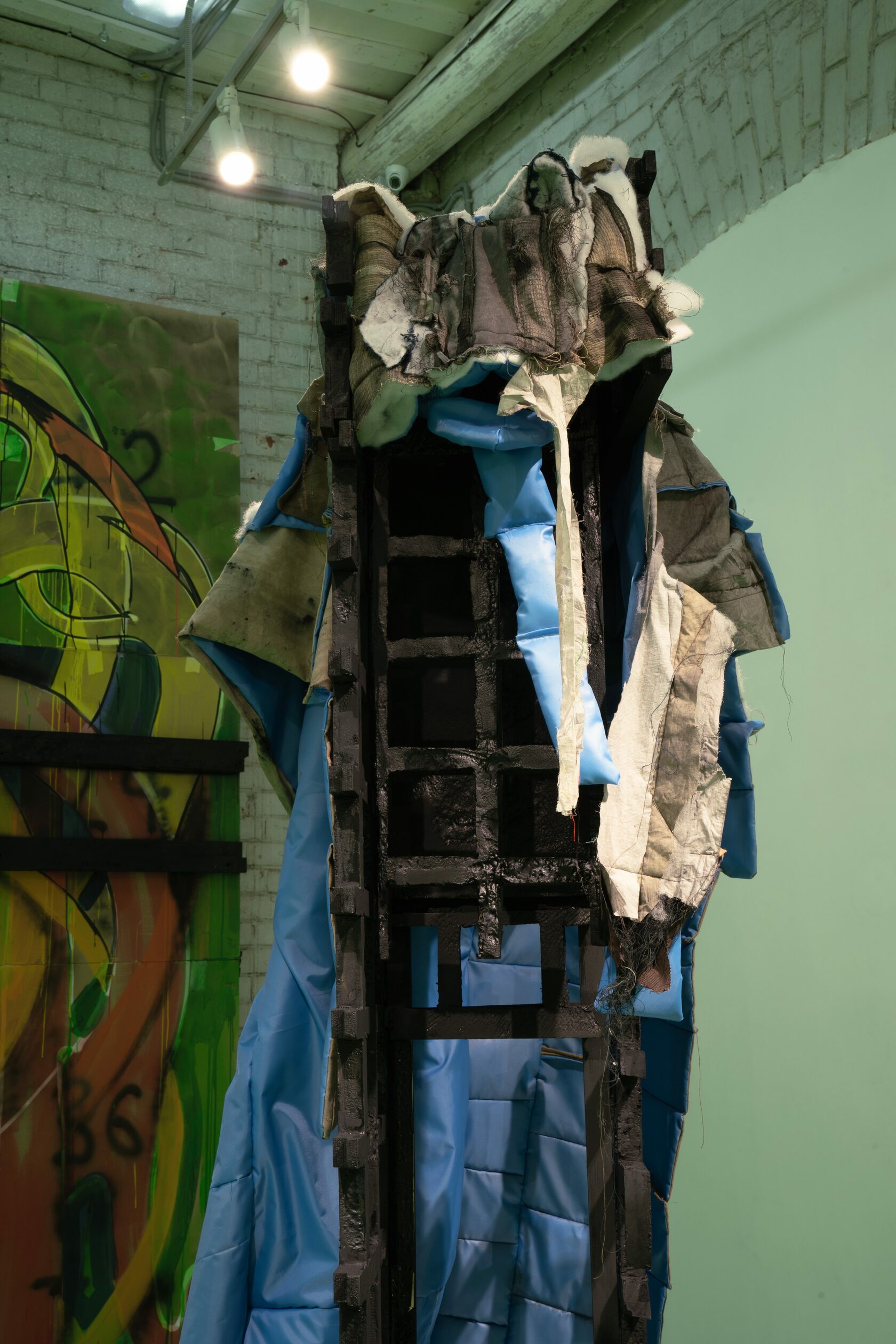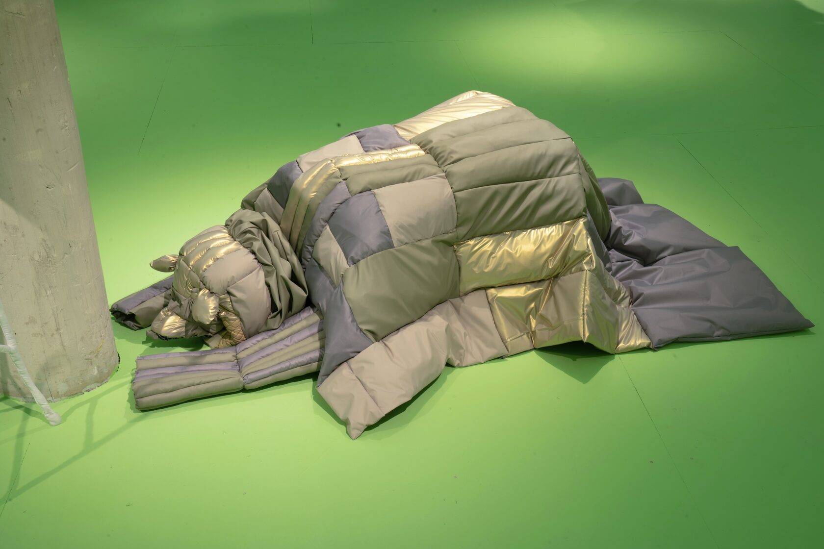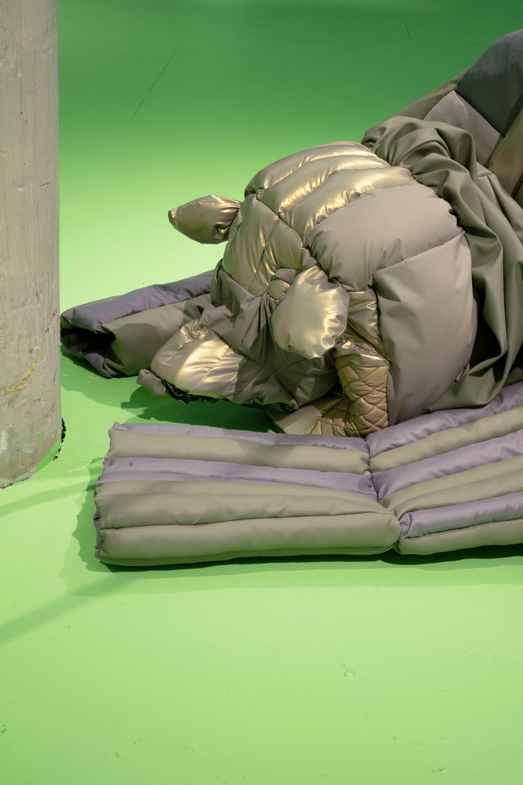 2023, raincoat fabric, syntepon, metal, 137 x 50 cm