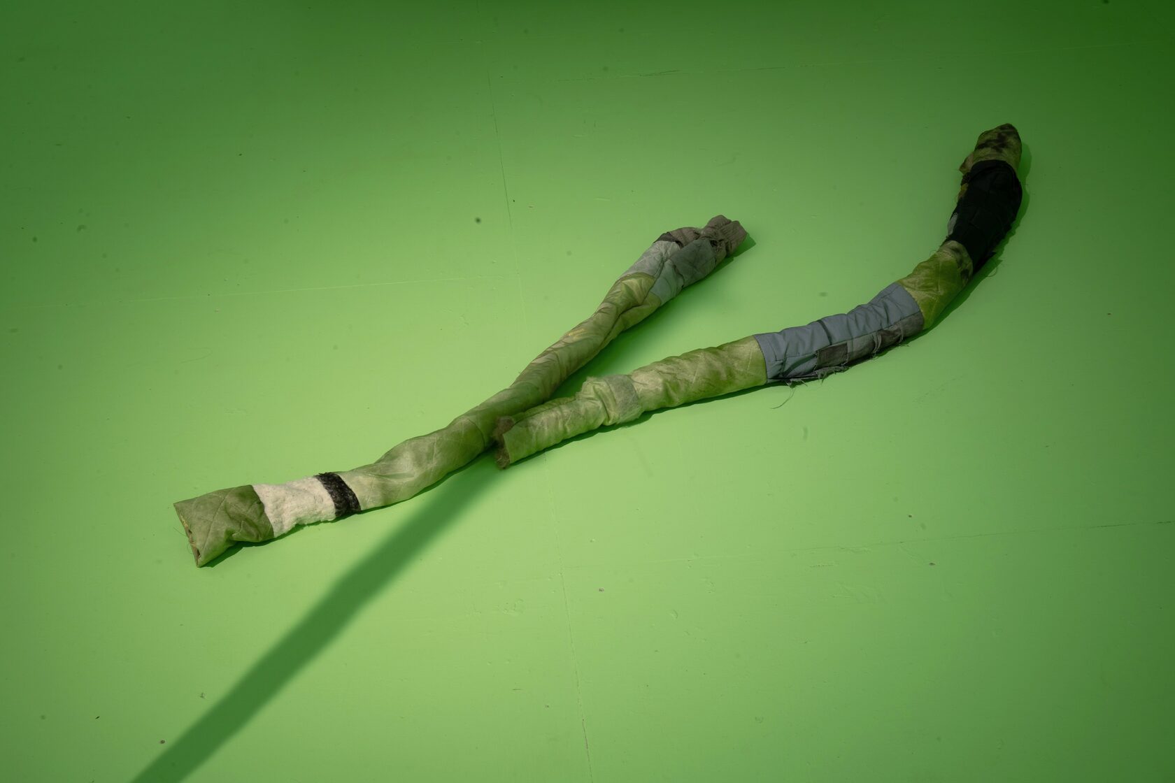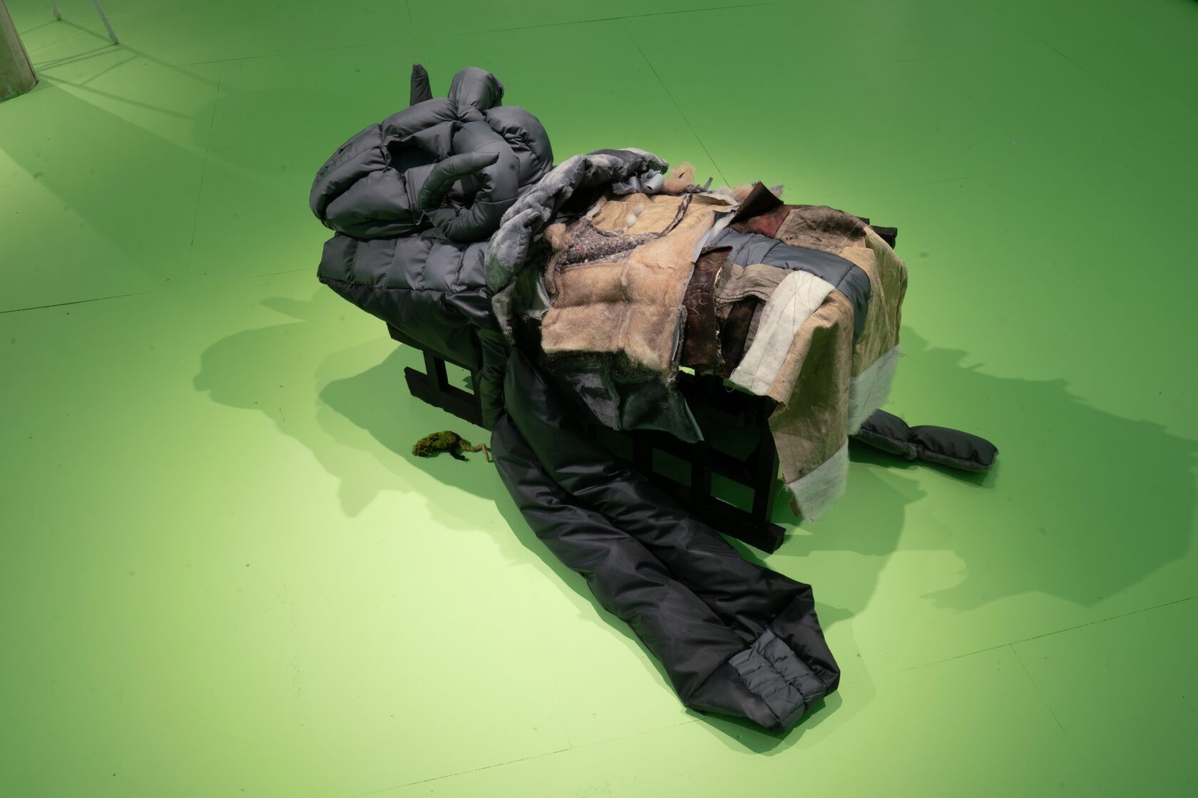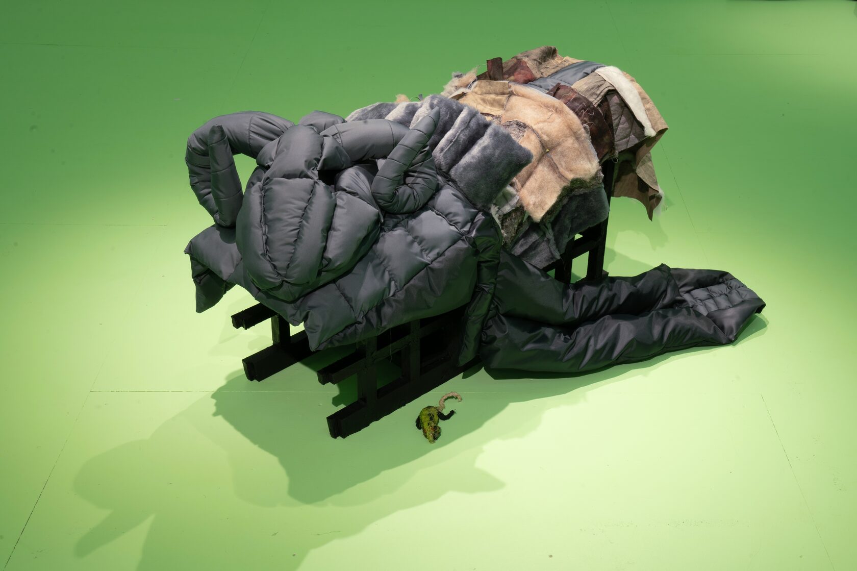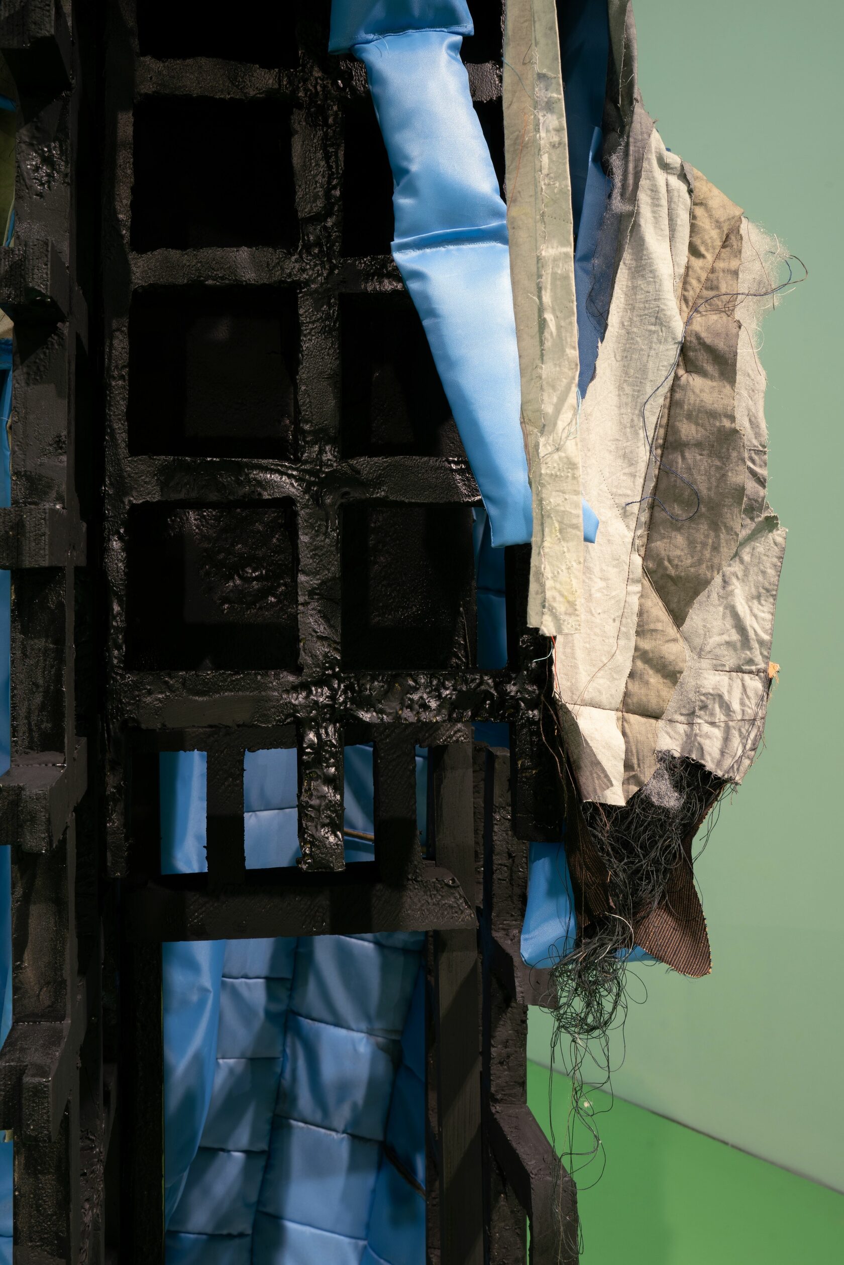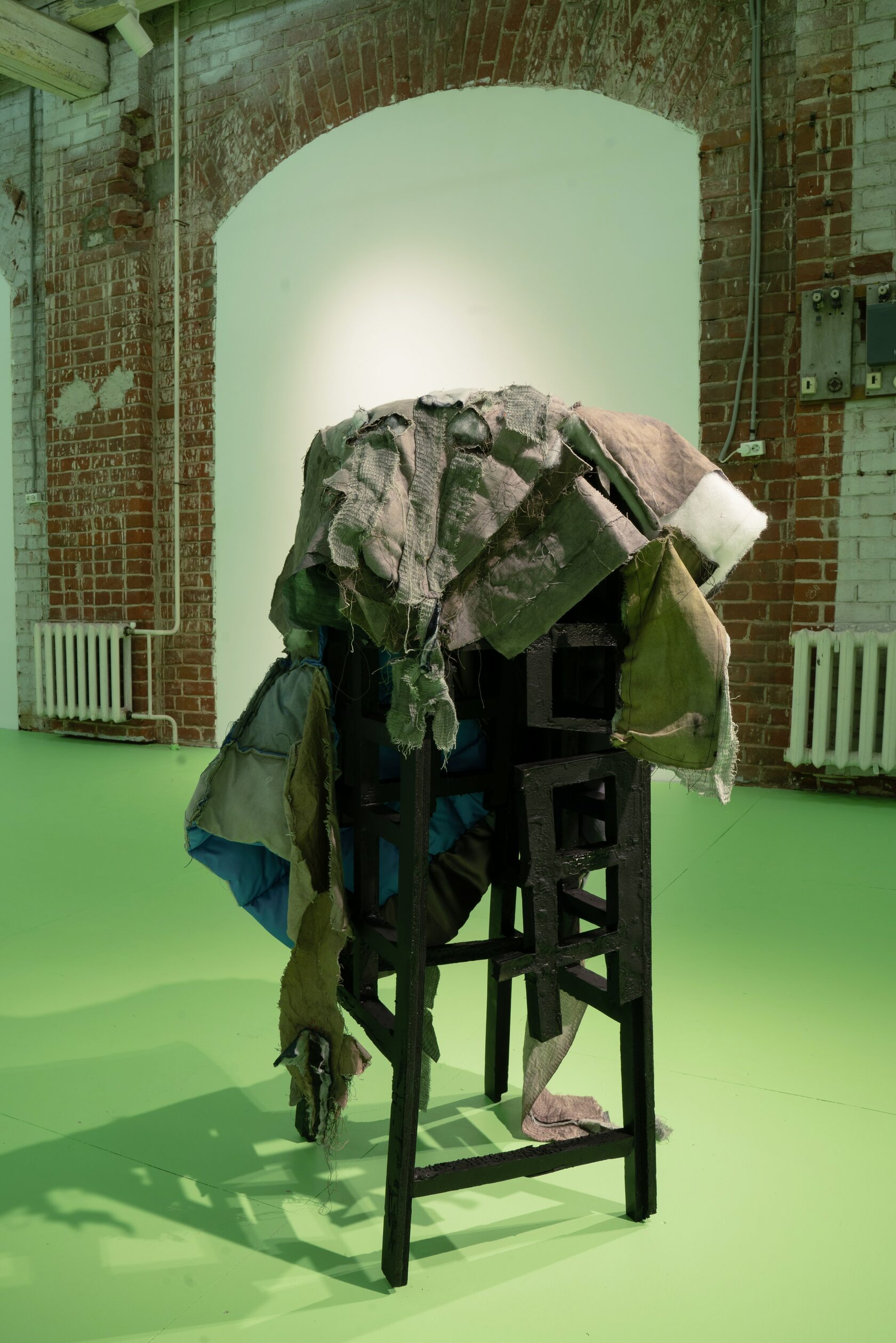 2023, raincoat fabric, syntepon, metal, 137 x 50 cm