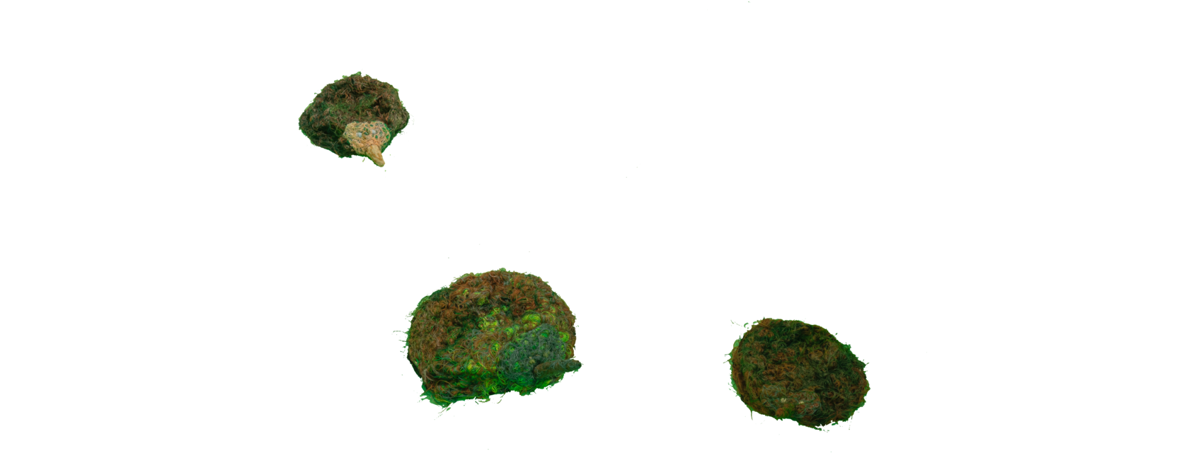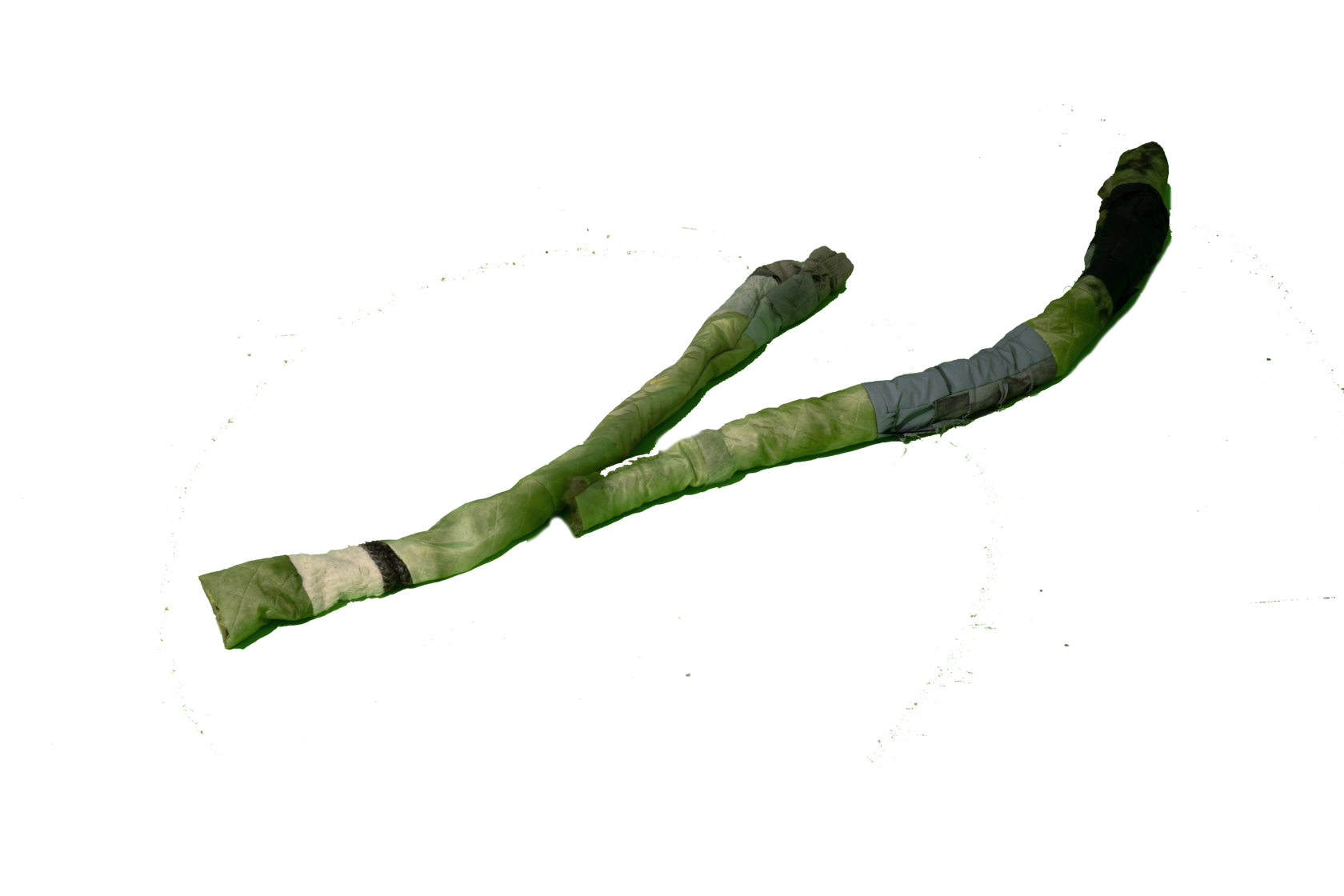 2022, glass wool, wood, fishing nets, branches, 180 x 40 cm