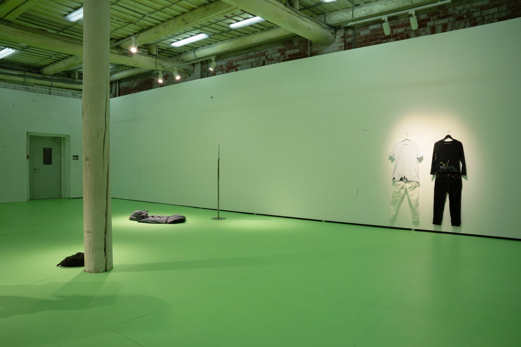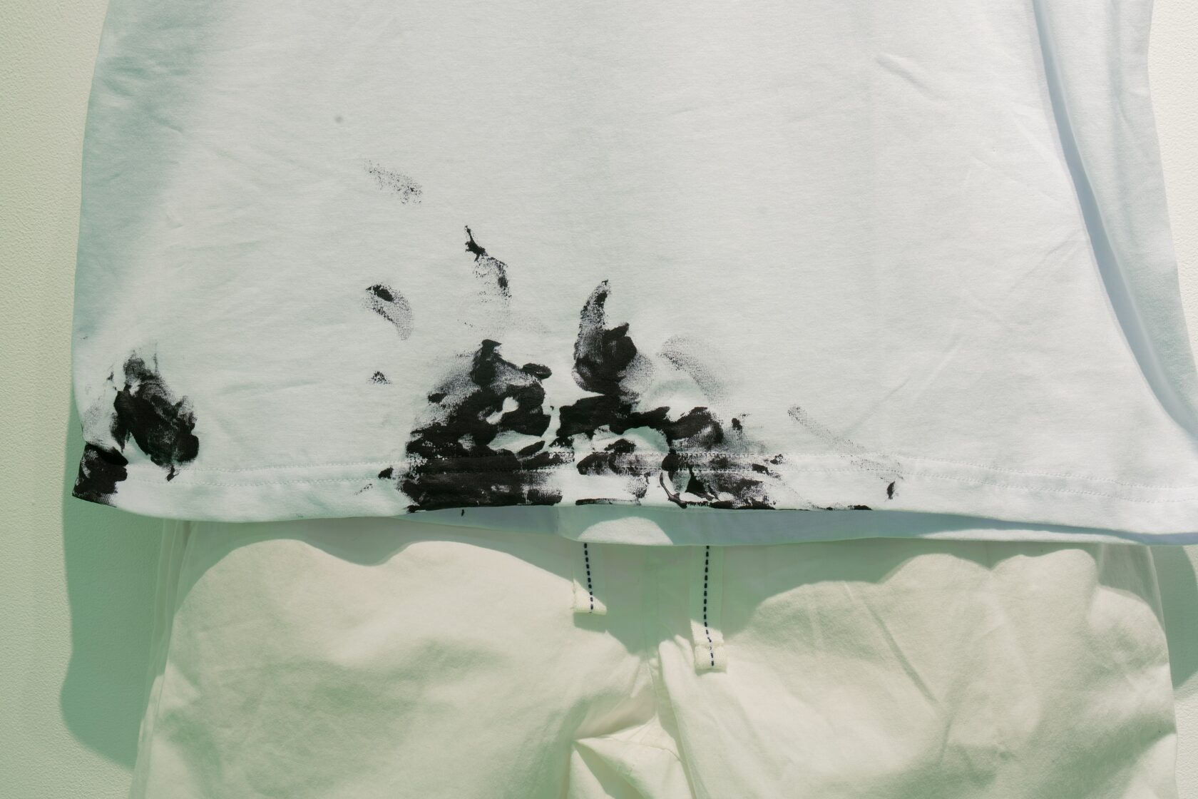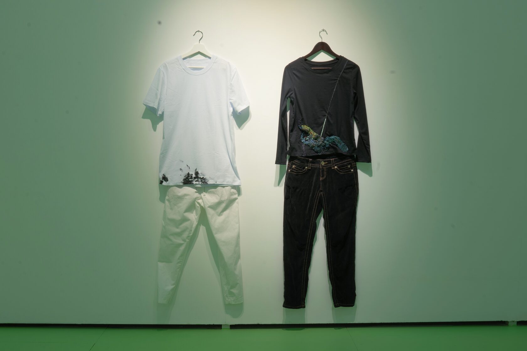 Arthur Golyakov, self-portrait, 2023, T-shirt, pants, acrylic, dimensions vary