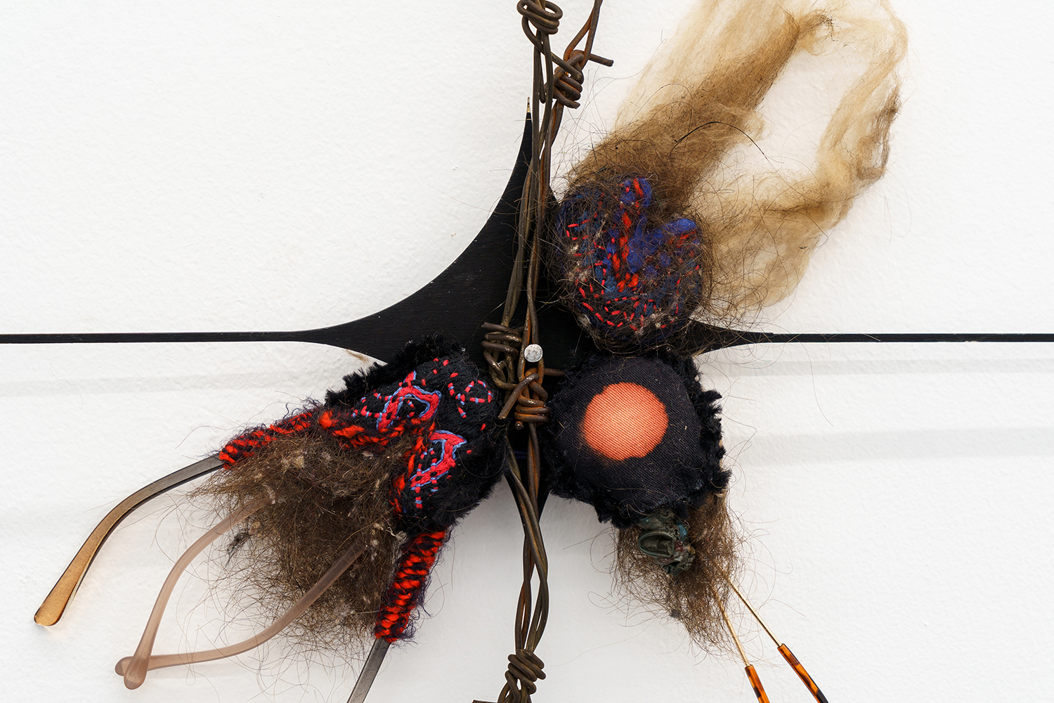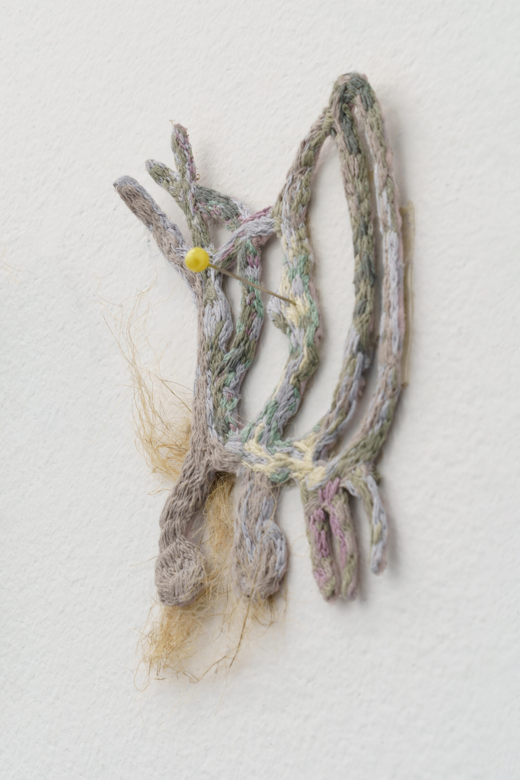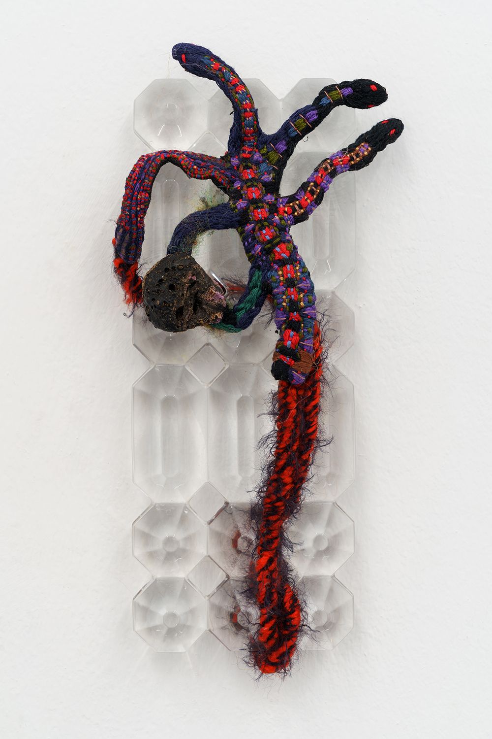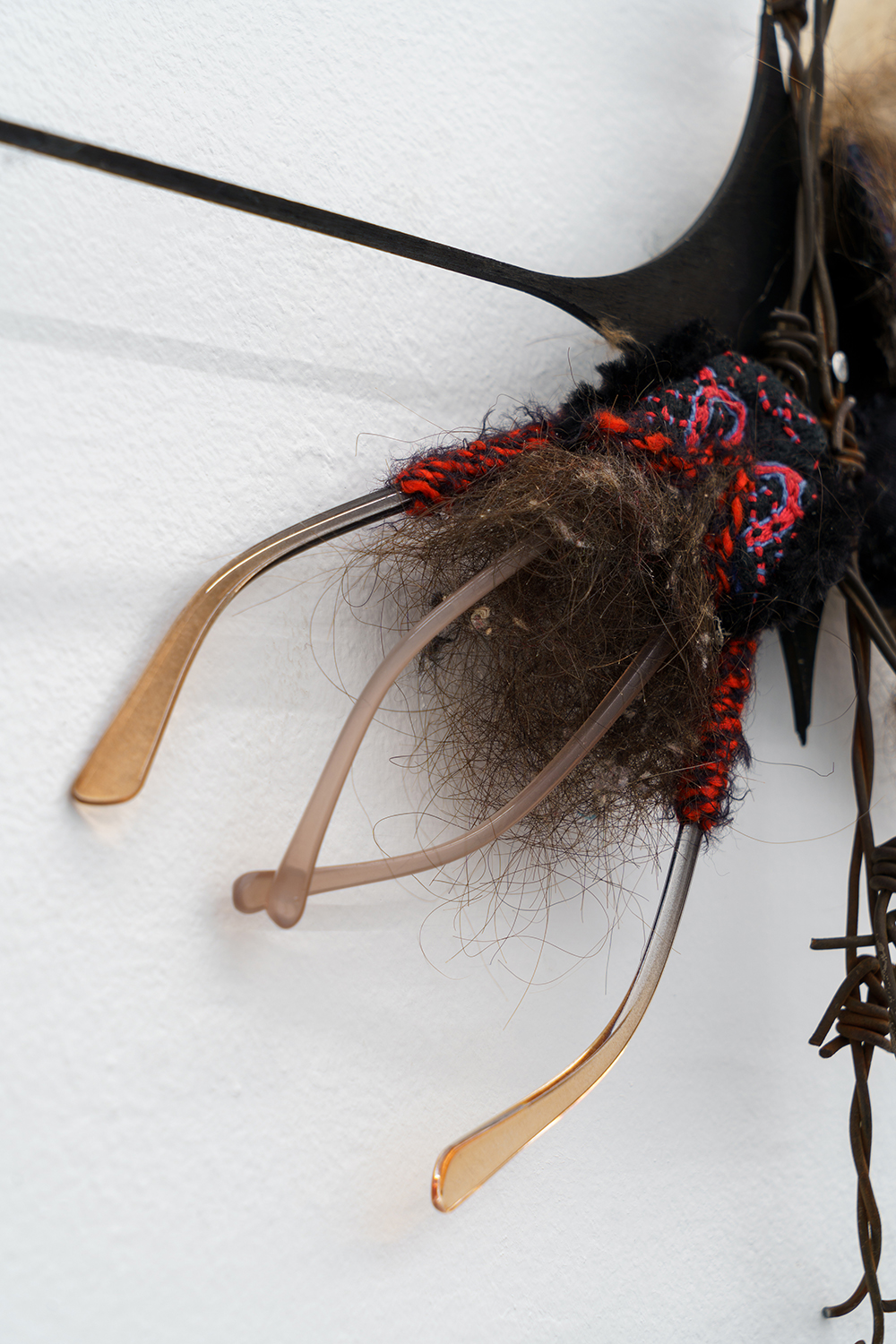 2022, glass from chandelier, thread, fabric, wire, polymer clay, 10 х 30 х 3 cm
