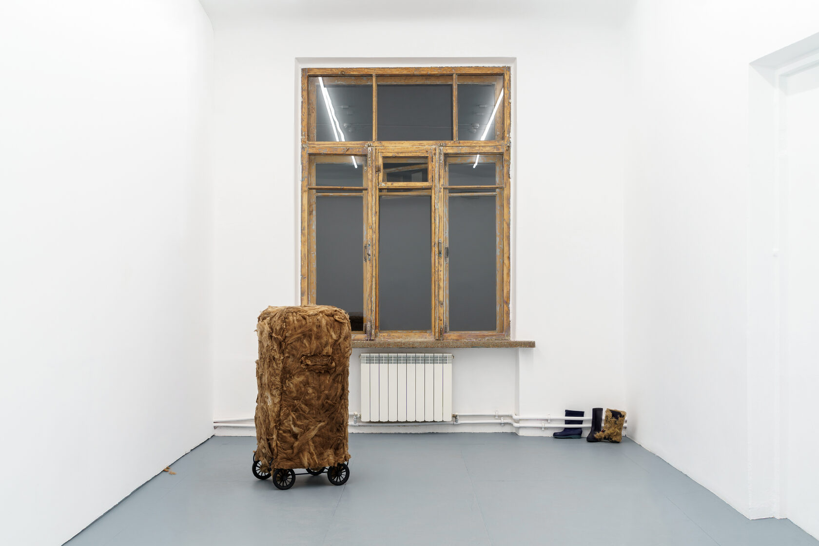 2022, suitcase, glass wool, metal, plastic, wood, 40 x 50 x 110 cm